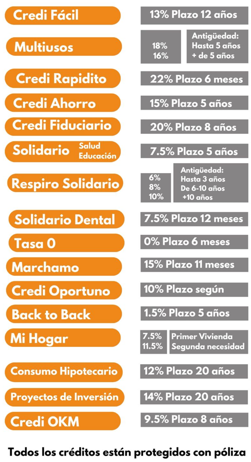- Financiamiento para educación: Aplica para matrícula, mensualidades, compra de útiles. libros didácticos y uniformes.